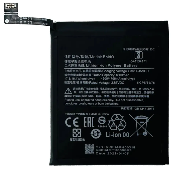 Уважаемые покупатели! Представляем Вашему вниманию аккумулятор для замены вышедшего из строя оригинального АКБ смартфона Xiaomi K30 Pro ZOOM. Представленный бренд аккумулятора для смартфонов и мобильных телефонов, производится в заводских условиях при полном соблюдении технических характеристик и размеров оригинальных аккумуляторов, батарея не только безопасна, но и долговечна благодаря тщательно подобранным компонентам. Вы можете быть уверены, что качественные платы контроллеров аккумулятора корректируют зарядку и отдачу напряжения, обеспечивая стабильную работу вашего устройства. С нашей батареей, вы получаете гарантированное качество и производительность, обеспечивая вашему телефону продолжительную и надежную работу. В каких случаях вы нуждаетесь в замене: если устройство стало плохо заряжаться, мало держит зарядку, сильно нагревается при зарядке, либо он вздулся или при физическом повреждении. АКБ подарит новую жизнь вашему гаджету Сяоми К30 Про Зум. Перед установкой батарейки на телефон, проверьте контакты на наличие защитной плёнки, если она присутствует, удалите её. Обязательно, необходимо произвести не менее 5-6 циклов полной зарядки батареи для корректного отображения процента заряда устройством, аккумулятор получает питание от стандартной сетевой зарядки для продления срока службы батарейки используйте качественное зарядное устройство. Рекомендуем доверить работу по замене запчасти квалифицированному мастеру или обратиться в центр по ремонту цифровых устройств. Аккумуляторная батарея для сотового телефона не уступает по качеству оригиналу, имеется шлейф для крепления. Перед оформлением покупки проверяйте совместимость вашего устройства с данным АКБ. Аккумуляторы бренда надежные и соответствуют заявленным характеристикам (Обращаем Ваше внимание, что для большинства современных телефонов рекомендуется перепайка контроллера из оригинальной батареи в новый АКБ, так как их контроллеры имеют запрограммированные заводом алгоритмы работы и согласованности, под конкретное устройство).